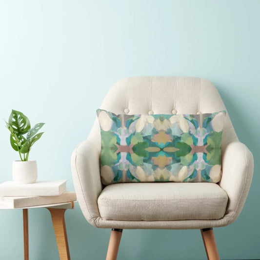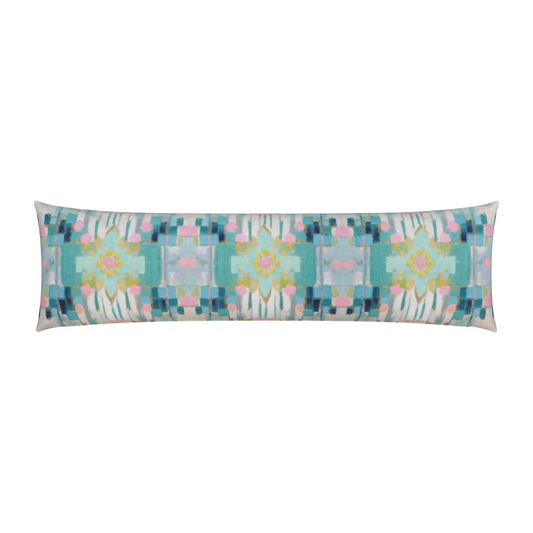 Fiona Long Lumbar Throw Pillow – Colorful Abstract Art in Aqua
