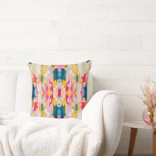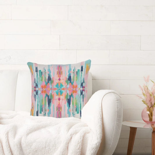 Layla Bohemian Throw Pillow – Colorful Abstract Palette Knife Print