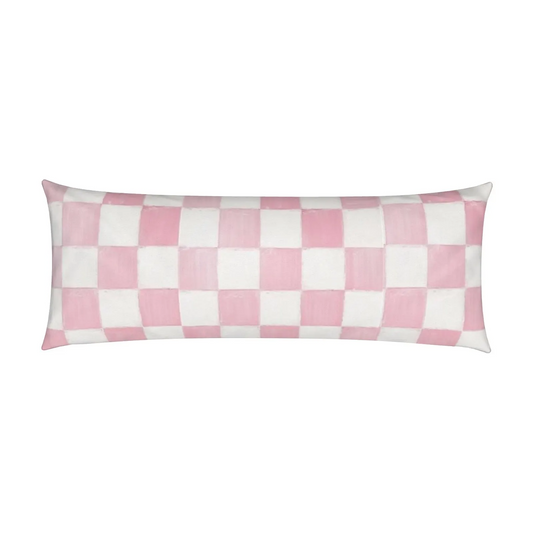 Adel Pink & White Checkerboard Lumbar Pillow – Long Decorative Cushion