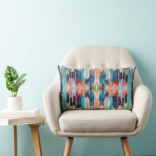 Bella Abstract Long Lumbar Pillow – Colorful Palette Knife Print