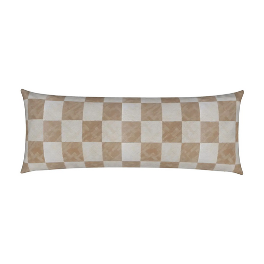 Adel Tan & White Checkerboard Lumbar Pillow – Long Decorative Cushion