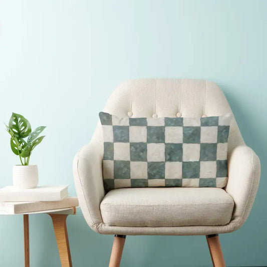 Adel Green & White Checkerboard Lumbar Pillow